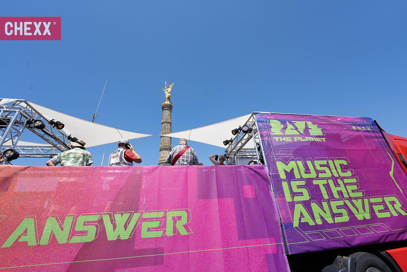 Das Motto der "Rave the Planet" Parade lautete "Music is the Answer". Egal wie man das Motto in Kriegszeiten finden mag - nach 13 Jahren feierte die Loveparade unter neuem Namen ihre Auferstehung mit einem Triumphzug auf der Straße des 17. Juni in Berlin. Ganz vorn dabei, zwischen wummerden Technoklängen, Dr. Motte, begleitet vom neuen Berliner Senator für Kultur und Gesellschaftlichen Zusammenhalt Joe Chialo.