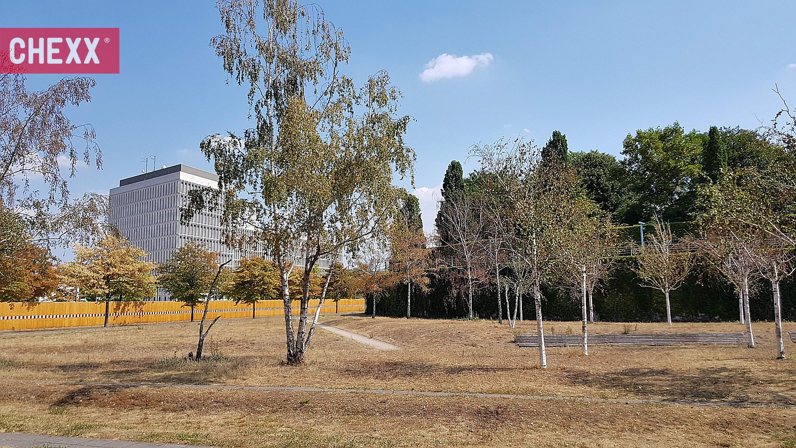Drei Maler und mehrere Tage brauchte man in Berlin Mitte, um am Bundesinnenministerium die Holzbretter dieses Luxusbauzauns zu lasieren, während man rund 40 Bäume ein paar Meter weiter, vor dem Kanzlerpark in einer "geschützten Grünanlage", vertrocknen ließ. Diese zu retten hätte nur einen Maler, wenige Stunden und Wasser gebraucht. Die verantwortliche Bezirksstadträtin für Weiterbildung, Kultur, Umwelt, Natur, Straßen und Grünflächen in Berlin Mitte ist von der Partei Die Grünen.