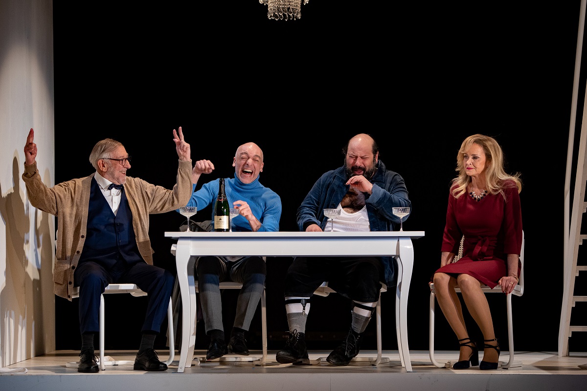 Das Premierenpublikum bedankte sich mit stehenden Ovationen. "Biedermann und die Brandstifter" steht noch bis zum 30. April auf dem Spielplan des Schlosspark Theaters.